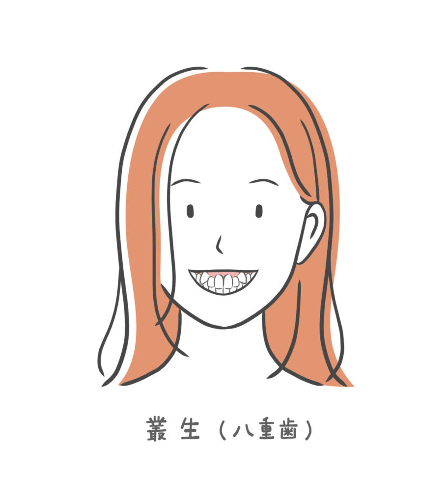 八重歯とは、犬歯(前から3番目の歯)が正しい位置に生えず、歯並びの外側にずれている状態のことをいいます。特に日本人はあごが小さい人が多く、歯が並ぶスペースが足りないため、八重歯になりやすい傾向があります。