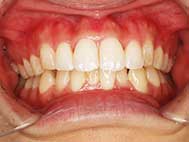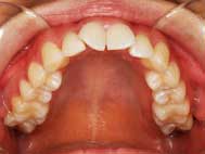 前歯の歯と歯の間を削り1歯1歯の幅を少し小さくすることで、歯を前に出すことなく部分治療で歯を並べました。