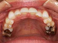 左上前歯が後ろに引っ込んでいるのが気になるとの事で来院されました。