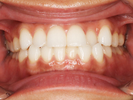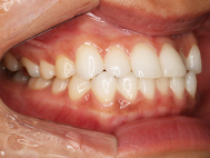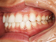 上のみの部分治療を行いました。現在上下の正中が合っているのでこれを崩さないようにして、左前歯を前に出しました。