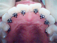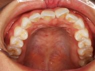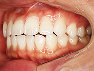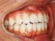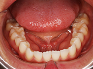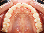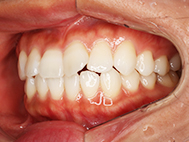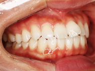 上の前歯がねじれているのを出来れば部分治療で、治療しているのが目立たないように、歯の裏側の装置で行ってほしとのことでした。歯と歯の間を削って歯を並べるスペースを作り、歯列を綺麗にしました。